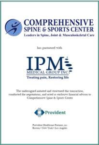 Provident Healthcare Partners (“Provident”), a leading healthcare investment banking firm, announced it has advised Comprehensive Spine & Sports Center (“CSSC”) in its partnership with IPM Medical Group (“IPM”). CSSC is a spine and sports medicine practice providing interventional pain management, functional restoration, and related multidisciplinary services and products through eleven locations in California and Nevada.