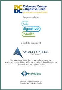 Provident Healthcare Partners (“Provident”), a leading healthcare investment banking firm, announced it has advised Delaware Center for Digestive Care (“DCDC”) in its partnership with US Digestive Health (“USDH”), backed by Amulet Capital. This transaction represents USDH’s first partnership outside of Pennsylvania. DCDC will bring an additional three locations, two ambulatory surgery centers, over 35 providers, and more than 140 employees.