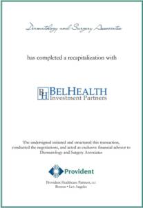 “Drs. Rosen and Whang have built Dermatology and Surgery Associates into the leading provider of medical dermatology services in the Bronx. With BelHealth as a partner, we believe they are well-positioned to expand their reputation for clinical excellence into new markets in New York and New Jersey,” commented AJ Shekar, Director at Provident.