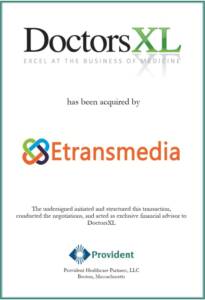 DoctorsXL has been acquired by Etransmedia Technology, Inc. (“Etransmedia”). DoctorsXL (DXL) is a national leader in outsourced medical practice management services. The Company provides medical practices with comprehensive outsourced services including; medical billing, coding, contract negotiations, technology management, practice management, and strategic consulting. Provident Healthcare Partners served as exclusive financial advisor to DoctorsXL. The terms of the transaction were not disclosed.