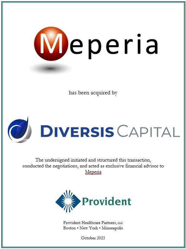 Provident Healthcare Partners (“Provident”), a leading healthcare investment banking firm, is pleased to announce it has advised Meperia, a supply chain and strategic sourcing platform serving Integrated Delivery Networks (IDNs). Provident also facilitated Diversis in the acquisition of Kermit, a bill-only, spend management, and analytics platform for physician preference items (PPI).