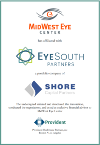 Rex Adams, EyeSouth’s CEO, continued “We are thrilled to welcome Midwest Eye Center to the EyeSouth network and appreciate the strong, professional support that the Provident team provided throughout the process.”