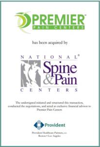 “The partnership of Premier and NSPC makes perfect sense both from both a clinical philosophy and a geographic fit as they expand their national footprint. I believe Premier will expedite their expansion by leveraging the infrastructure and additional ancillary lines of business NSPC currently has in place,” stated Michael Patton, Managing Director at Provident Healthcare Partners.