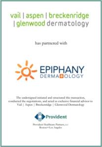 Vail | Aspen | Breckenridge | Glenwood Dermatology (“VAB Dermatology”), a leading provider of medical and cosmetic dermatology offerings to resort and rural Colorado communities, has partnered with Epiphany Dermatology, a leading dermatology company committed to improving access to exceptional dermatologic care. VAB Dermatology’s provider team is dedicated to personalized and professional skin care across its six locations in Vail, Basalt, Aspen, Breckenridge, Eagle, and Glenwood Springs. Provident Healthcare Partners (“Provident”) served as exclusive financial advisor to VAB Dermatology. The terms of the transaction were not disclosed.