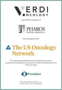 Provident Healthcare Partners (“Provident”), a leading healthcare investment banking firm, announced it has advised Verdi Oncology, Inc. (“Verdi”), a portfolio company of Pharos Capital Group (“Pharos”), on a transaction with The US Oncology Network (“The Network”), pursuant to which Nashville Oncology Associates (“NOA”), based in Tennessee, and Horizon Oncology (“Horizon”), based in Indiana, have joined The Network. NOA and Horizon offer comprehensive oncology services using advanced diagnostic methods, therapeutic options, and access to innovative clinical trials.